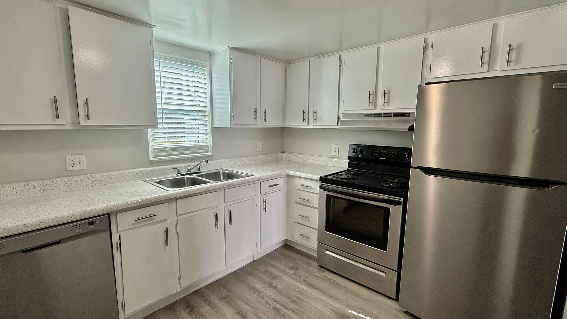 This apartment home comes fully equipped with a fridge, dishwasher, range, and a microwave.