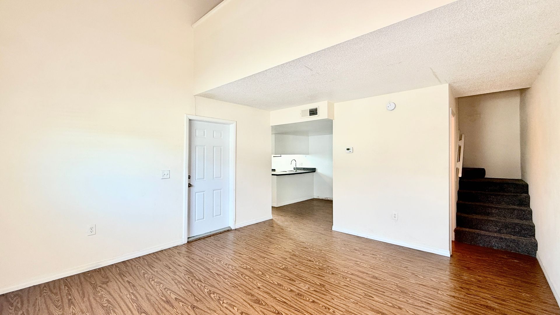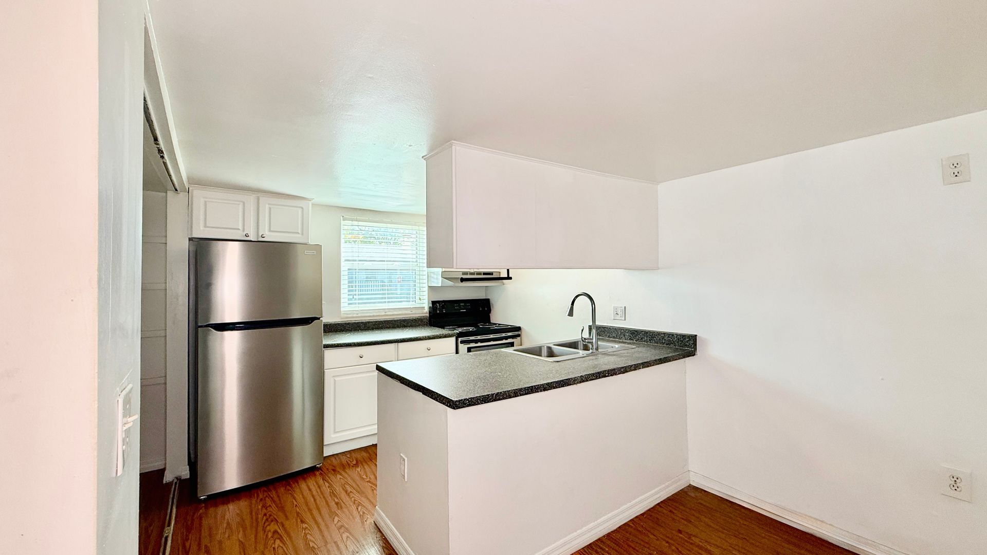 It is fully equipped with a stainless steel refrigerator, dishwasher, range, and microwave. Upstairs you find your cozy bedroom, the bathroom, a private balcony and even more space to create your new home how you wish!