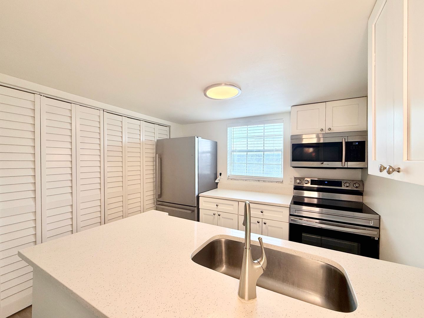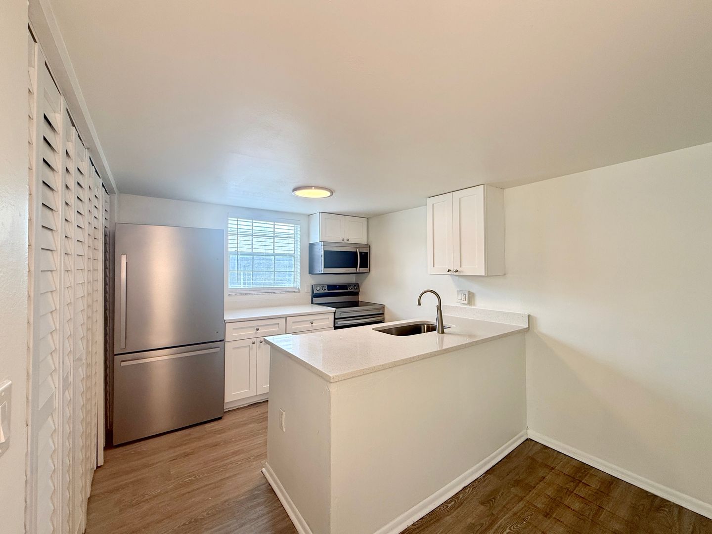 It is fully equipped with a stainless steel refrigerator, dishwasher, range, and microwave. Upstairs you find your cozy bedroom, the bathroom, a private balcony and even more space to create your new home how you wish!