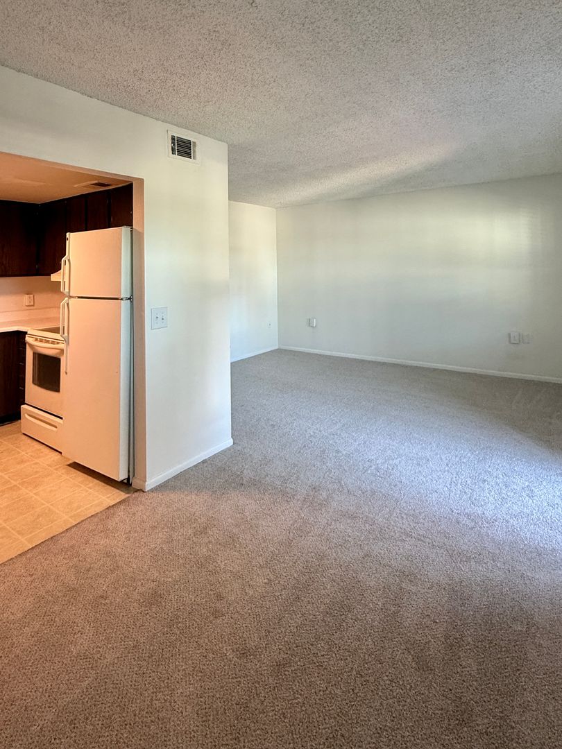 These units feature a combination of tile and carpet. The kitchen is fully equipped with a refrigerator, dishwasher, range and microwave.