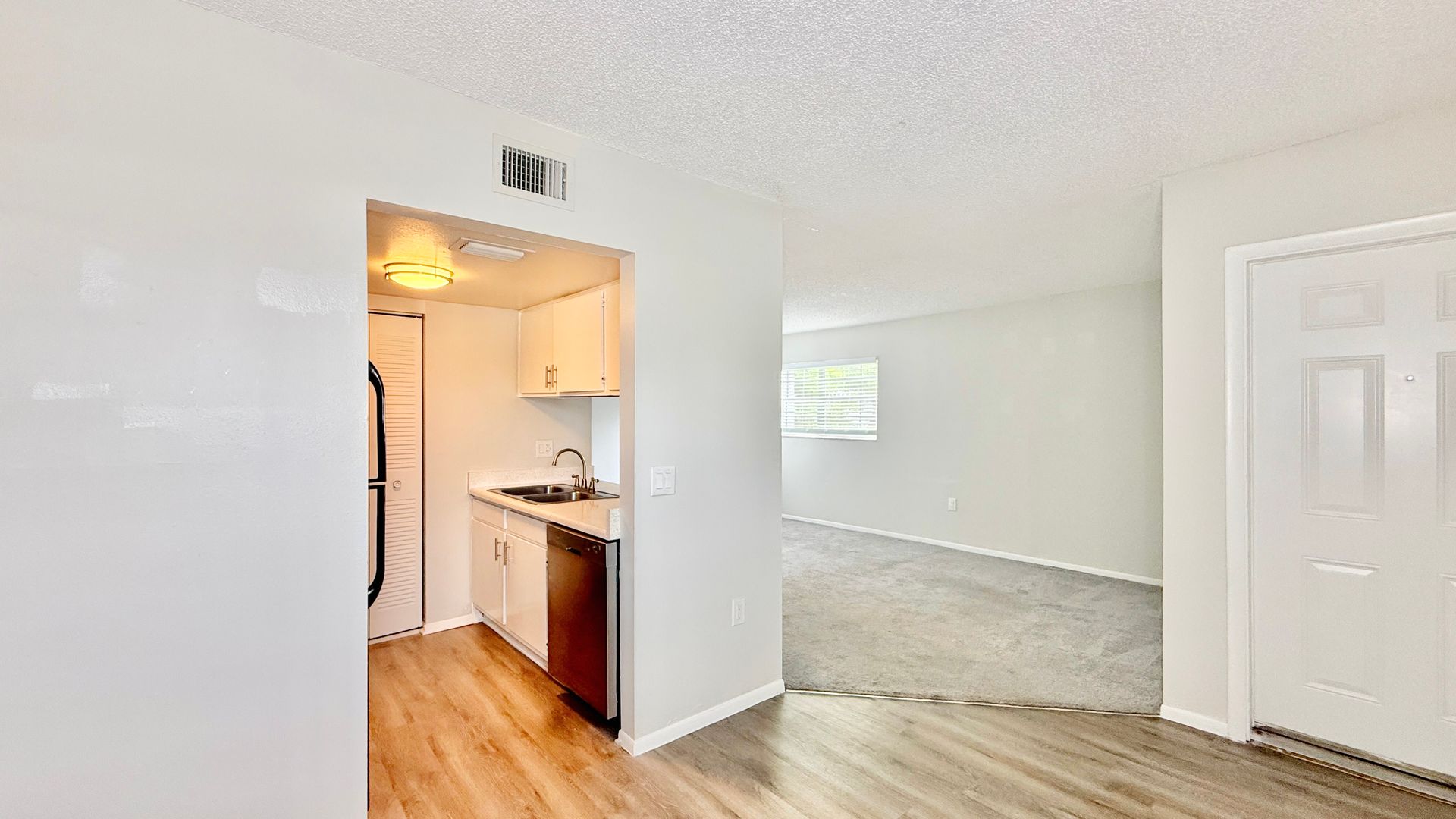Welcome home! This 643 SqFt apartment features a fully equipped kitchen, with an updated refrigerator, dishwasher, and range. Flooring is a combination of vinyl and/or carpet, depending on the unit.